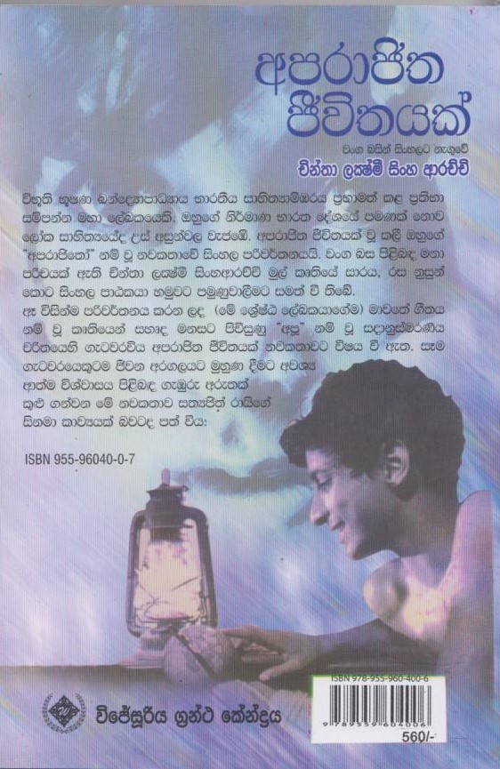 විභූති භූෂණ භාරතීය සාහිත්යාම්ඹරය ප්රභාමත් කළ ප්රතිභාසම්පන්න මහා ලේඛකයෙකි. ඔහුගේ නිර්මාණ භාරත දේශයේ පමණක් නොව ලෝක සාහිත්යයේ ද උස් අසුන්වල වැජඹේ. “අපරාජිත” ජීවිතයක් වූ කලී ඔහුගේ “අපරාජිතයෝ” නම් නවකතාවේ සිංහල පරිවර්තනයි. වංග බස පිළිබඳ මනාපපරිචයක් ඇති චින්තා ලක්ෂ්මී සිංහ ආරච්චි මුල් කෘතියේ සාරය රස නුසුන් කොට සිංහල පාඨකයා හමුවට පමුණුවාලීම ට සමත් වී තිබේ.